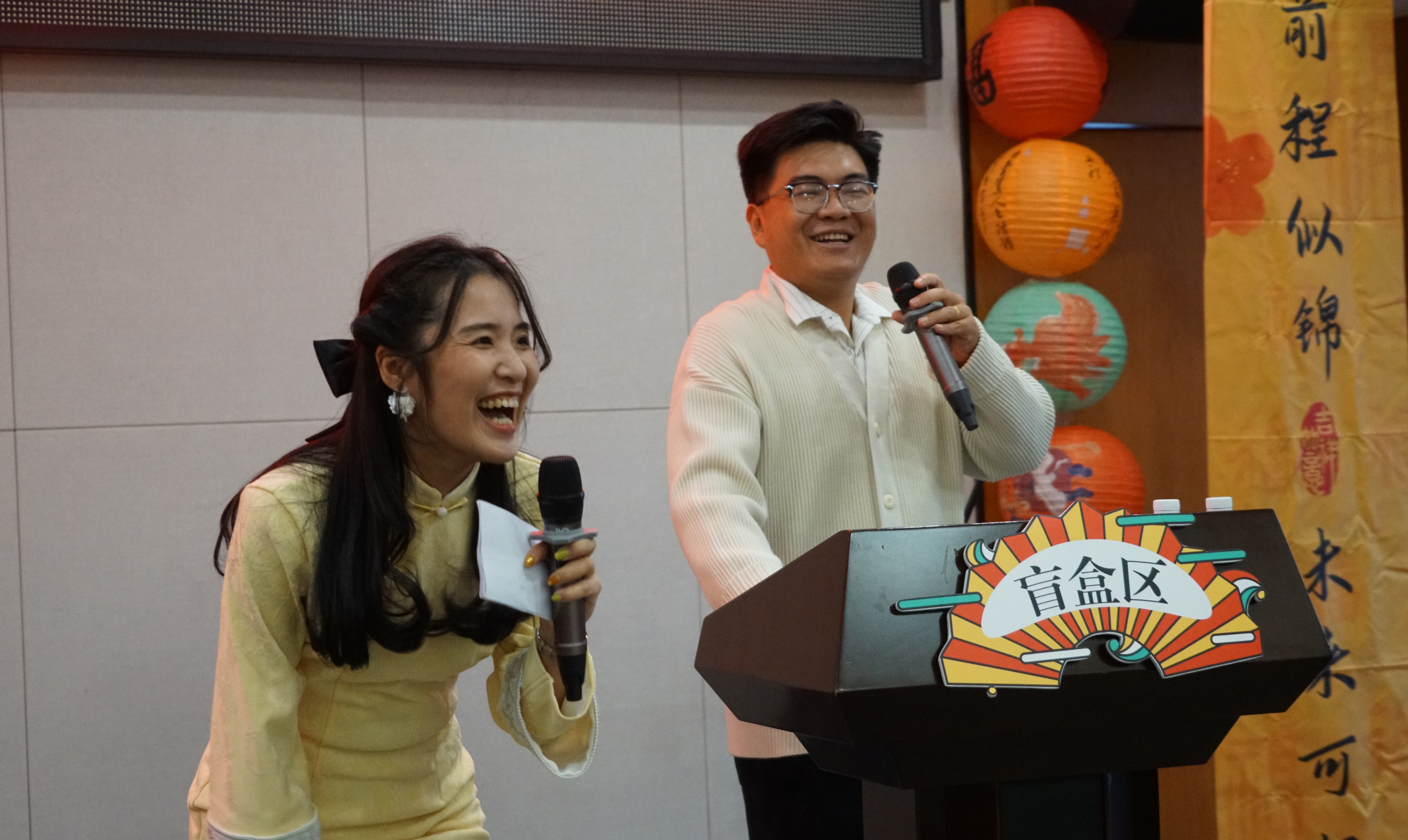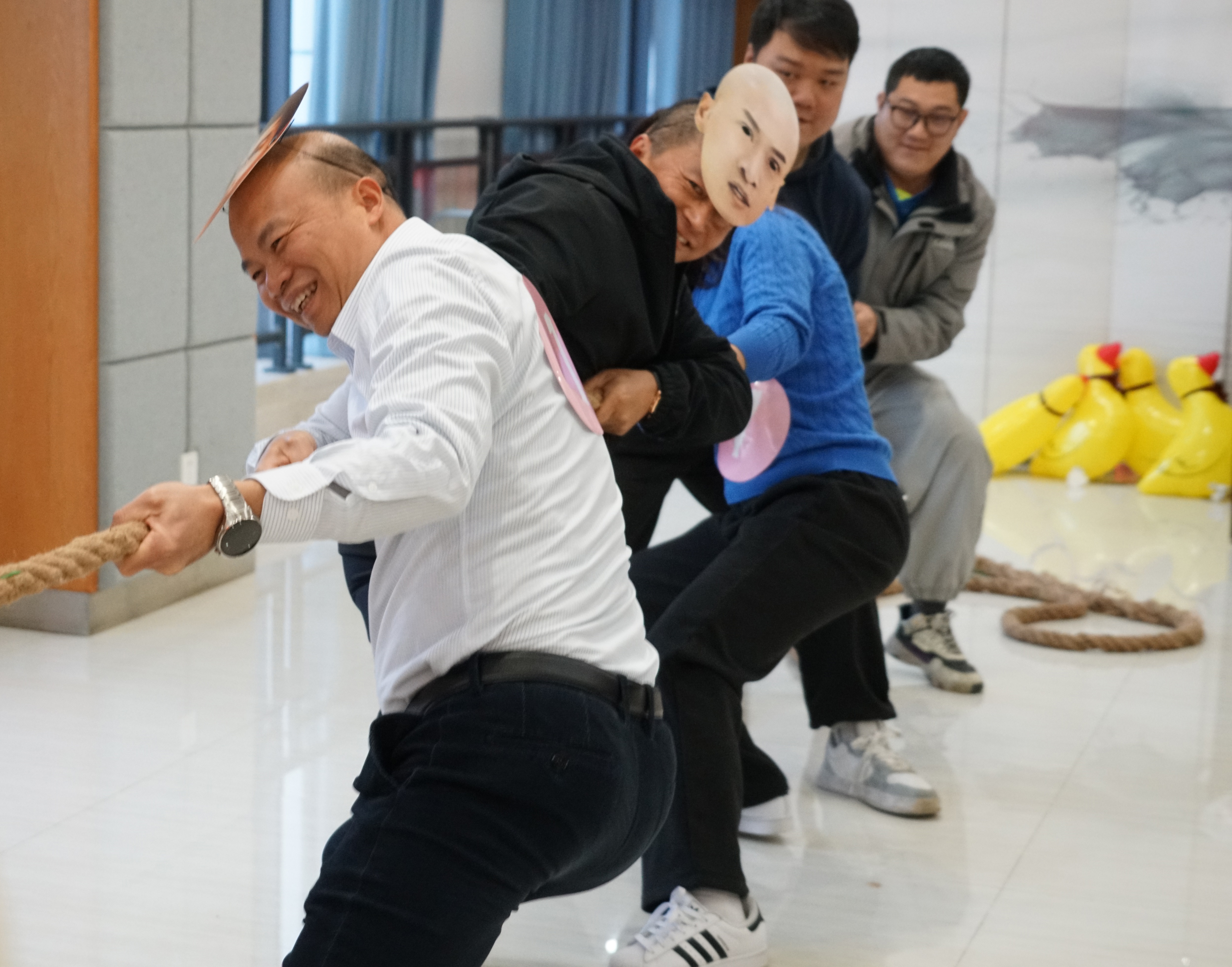 工作人员通过发放不同颜色的团队贴纸,随机组建8支队伍,活动氛围迅速升温。4个趣味横生的团体游戏轮番上演,现场氛围层层递进、持续升温。