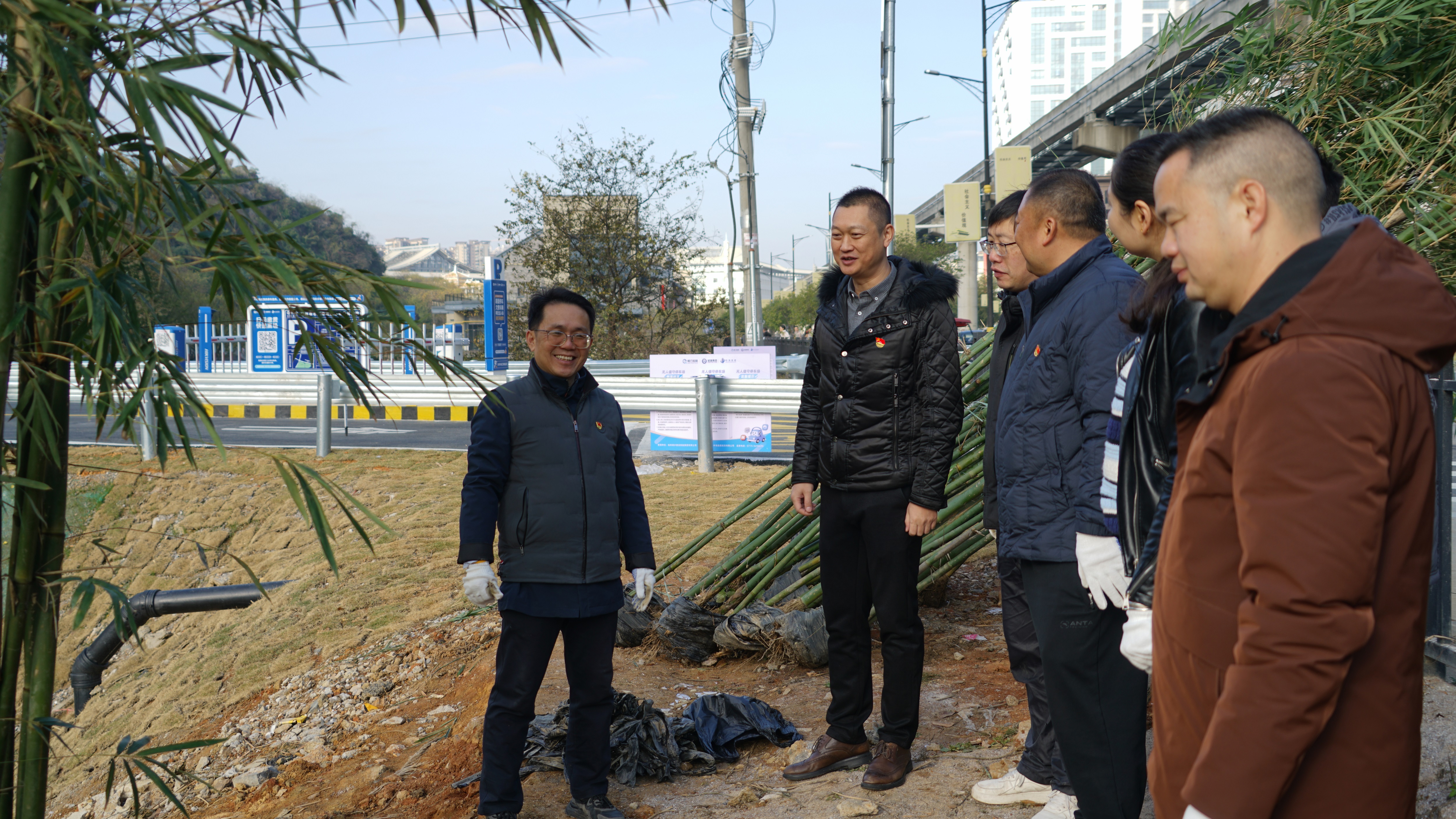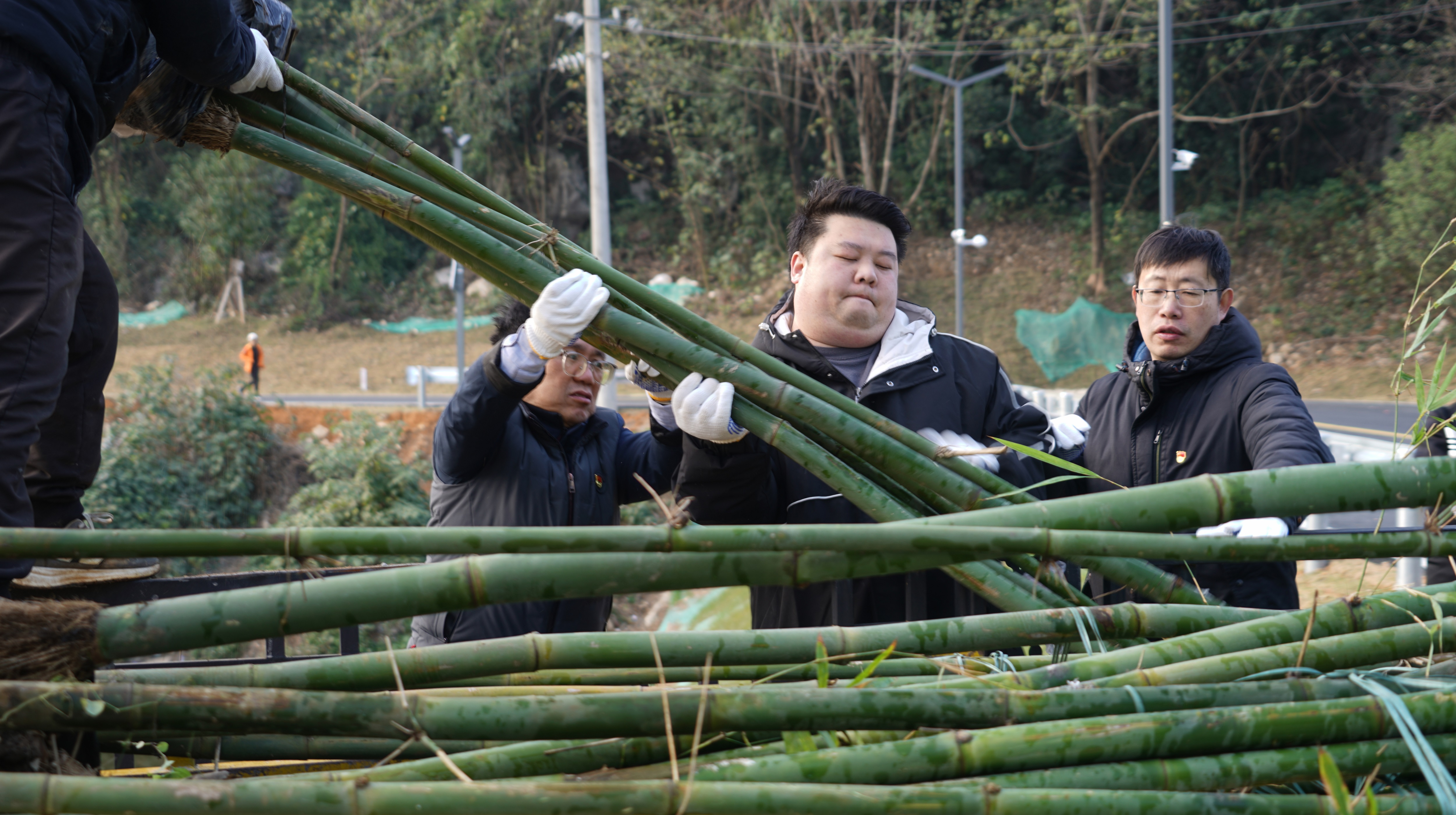 冬日的微凉丝毫未减劳动热情,现场一派热火朝天的实干景象,经过近2小时奋战,一片片新竹在步道旁挺立,翠绿竹苗与整洁步道相映成趣,既为山水街人行步道增添“竹韵”生机,更让生态美景与便民需求深度融合,为市民打造出更宜行、更宜赏的游园环境。