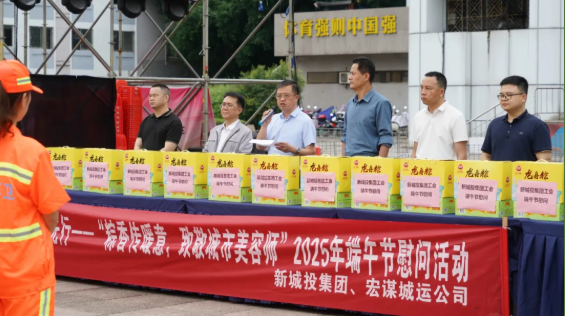 为深入践行习近平总书记“以人民为中心”“劳动最光荣”的指导思想,切实把组织关怀送到基层劳动者心坎上,进一步提升环卫职工队伍的职业认同感和幸福感,2025年5月29日端午节前夕,伟德betvlctor官方版投集团联合宏谋城运公司在秀峰区中心广场举办“粽香传暖意,致敬城市美容师”端午节慰问活动。此次活动得到市城管委,秀峰区政府、城管局、环卫站的大力支持与指导。市城管委党组成员、副主任蒋毅出席活动。受伟德betvlctor官方版投集团党委书记、董事长朱毅委托,党委副书记、纪委书记、工会主席谭力源代表集团党委、领导班子及全体职工,向奋战在环卫一线的干部职工致以节日问候。