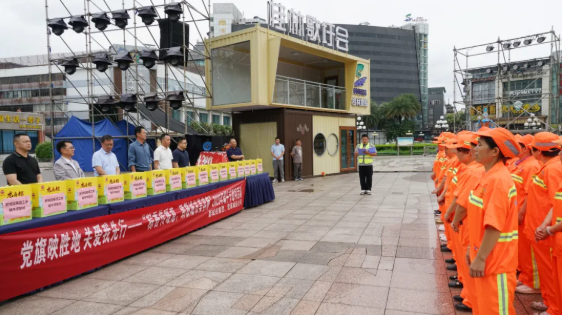 谭力源在讲话中回顾了伟德betvlctor官方版投集团秀峰区环卫项目的发展历程。作为资产超300亿元的综合性国有企业,集团党委始终坚持党建与业务深度融合、双向促进,以“党旗映胜地”党建品牌为引领,在城市建设主战场、城市运营第一线等领域交出亮眼答卷。他指出,自承接秀峰区环卫项目以来,项目452名职工以“绣花功夫”守护城市颜值,在三届桂林马拉松赛事和三届“三月三”民族歌圩荟活动的环卫保障、“6.19”特大洪涝灾害应急清淤、漓江河“消劣返清”整治行动等重大任务中冲锋在前、勇挑重担。这些成绩的背后,凝聚着每一位环卫职工的心血与汗水,是“劳动最光荣”的生动注脚。