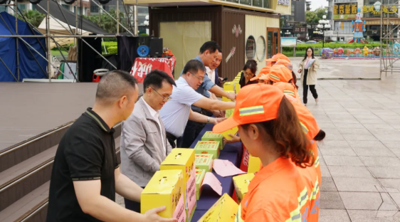 活动现场气氛热烈而温馨,与会领导向环卫工人代表逐一送上端午慰问品。一份份承载着节日祝福的慰问品,既是对环卫职工辛勤付出的真诚肯定,更是对“城市美容师”的崇高礼赞。接过礼包的环卫工人们纷纷表示,将以更加饱满的热情投入工作,把城市打扫得更干净、更美丽!