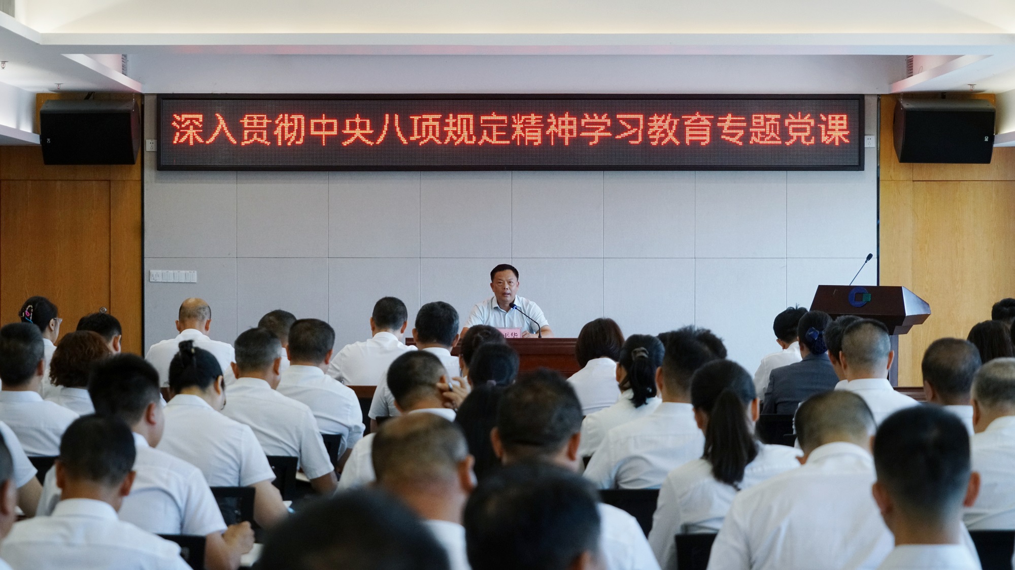 为扎实开展深入贯彻中央八项规定精神学习教育,进一步提升党员干部纪律意识,强化作风建设,2025 年 6 月 25 日下午,市国资委党委书记、主任蒋平华为集团全体党员及中层以上管理干部授课。