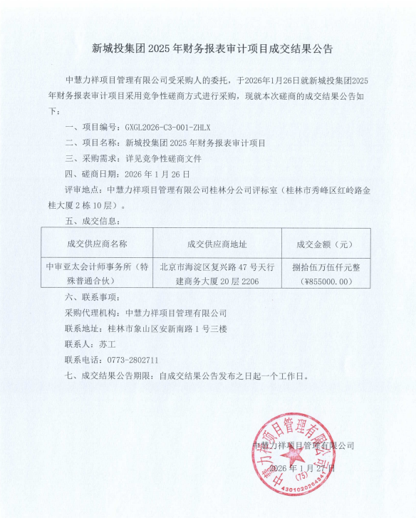 伟德betvlctor官方版投集团2025年财务报表审计项目成交结果公告